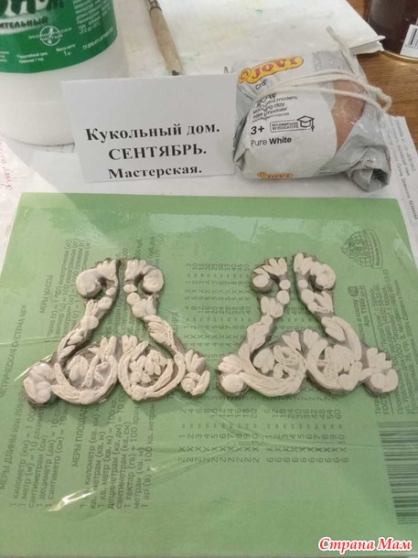 Столик из переплётного картона. «Чугунные» узоры слепила из самозатвердевающей полимерной глины.