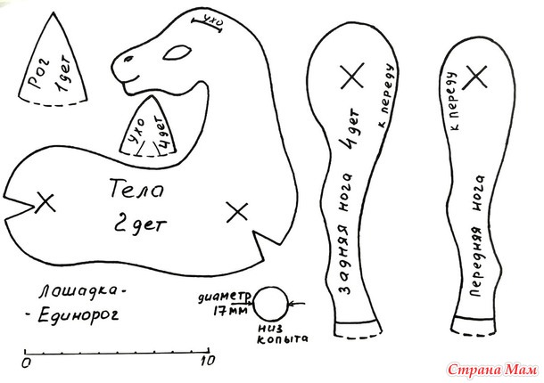 Я, как и обещала, сделала выкройку Коня - Единорога.