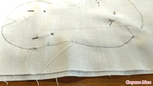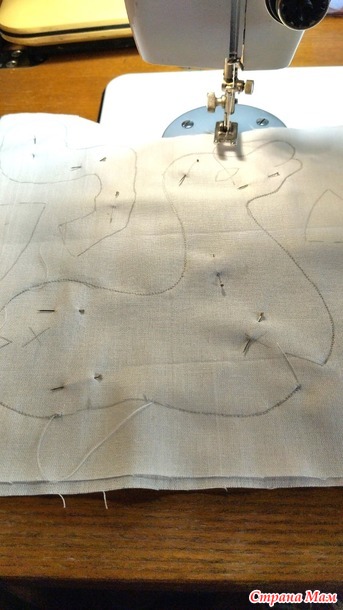 Не вырезая раскроенные детали, крой идет " под машинку". Можно сшивать на машинке, выставив длину стежка на 2-3 мм. Или вручную швом "назад иголка" с минимально возможной длиной стежка. Я сшивала на машинке.