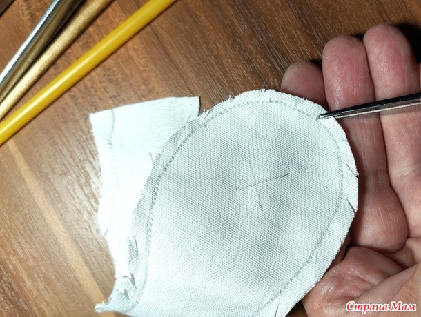 После сшивания всех деталей убрать булавки, вырезать и сделать надсечки в местах закруглений и поворотов. Это нужно для того, чтобы после выворачивания ткань не стягивалась в швах.