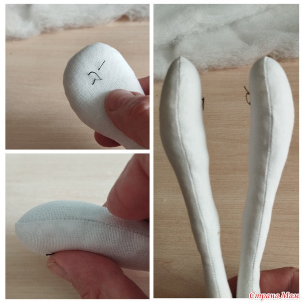 Затем пришейте ноги к телу потайным швом. Пришейте уши.