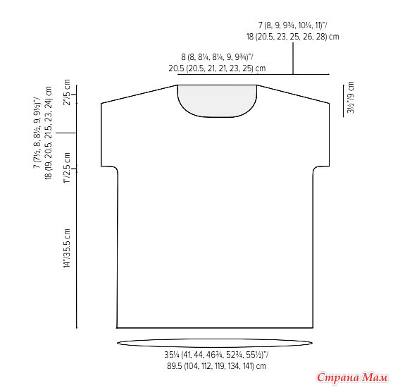 Вязать до высоты проймы 18 (19, 20.5, 21.5, 23, 24) см, закончив лиц. р.