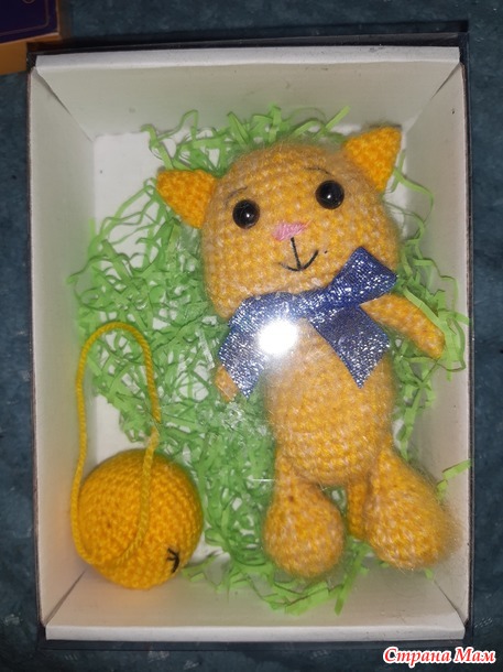 Открываю я коробочку и вижу игрушку в красках осени, вот этого милого кота