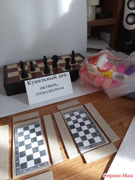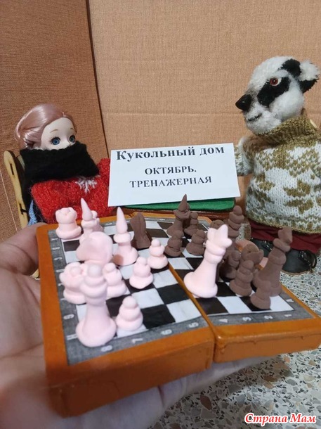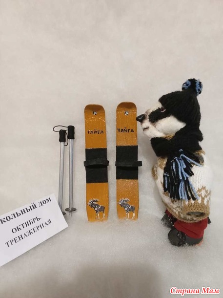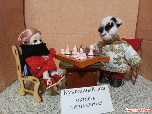 Кукольный дом. Октябрь. Тренажёрная. Мистер Баджер на лыжне, Алиса на катке, партия в шахматы.