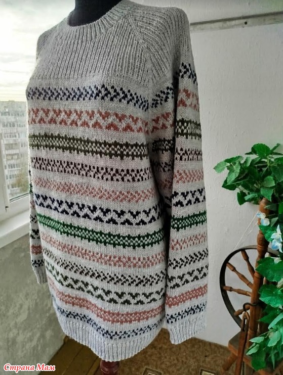 Я еще хочу предупредить - рукав получается очень широкий, если вязать по МК. И хотя я в прибавках реглана остановилась на количестве петель для размера S - это 91 петля, он все равно получился широким. Поэтому прибавляя у реглана петли на спинке и переду, прекратите прибавлять петли у реглана рукава, когда достигните нужной вам ширины и не забывайте что еще будут петли подрезов - я их уменьшила до 6 (в МК 12). А еще в МК ничего не сказано про убавки петель рукава - я убавляла через каждые 6 рядов с двух сторон от 2х центральных петель от подреза. Но все равно пришлось убавить еще петли при переходе на резинку - провязала по 2 вместе через каждые 3 петли. Но если будет на рукав меньше петель, то может и резинку не придется убавлять. Вот вроде все.