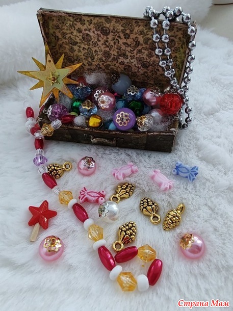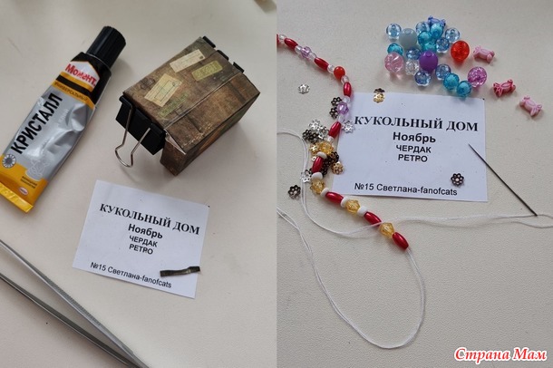 Для чемодана распечатка, картон и разные бусины