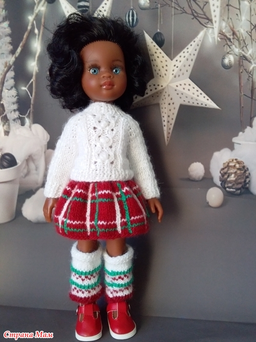 Кукольный дом. Декабрь. Новый год. Костюм в рождественских тонах с "шотландской" юбочкой