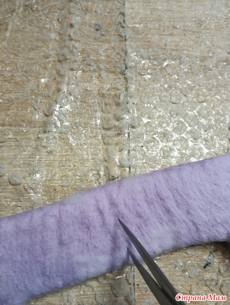 Просто берем ножнички, подрезаем, что нам не нравится и заваливаем край опять (как описывала сверху). Собираем в гармошку и трем краем о пупырку или середину ладошки.