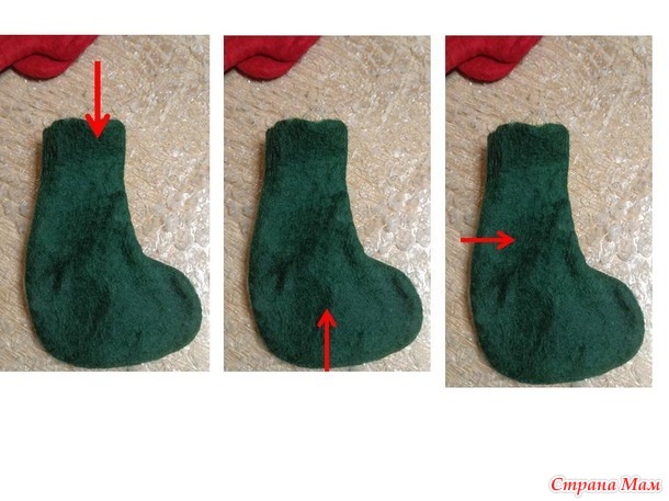 (На фото показываю в каком направлении нужно сворачивать в рулон валенки)