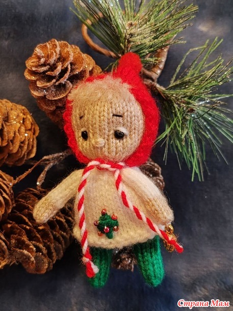 В номинации №3, елочная игрушка - Гномик по МК Латухиной Ирины