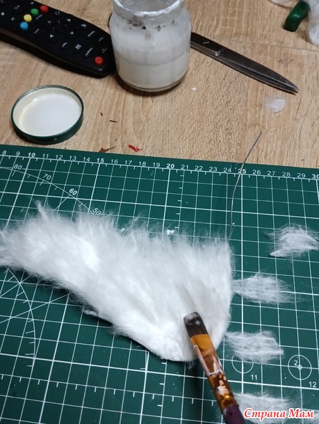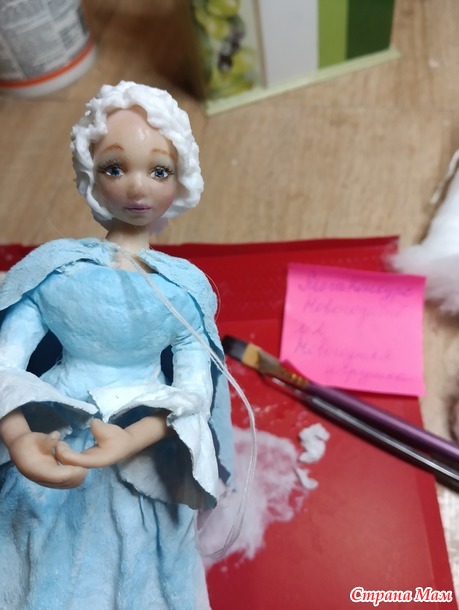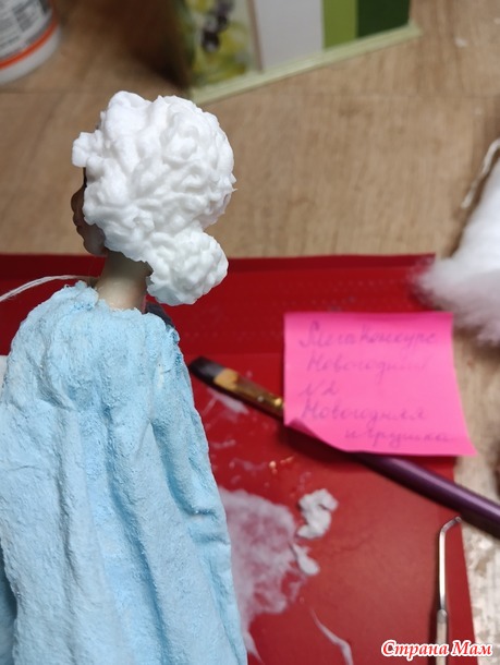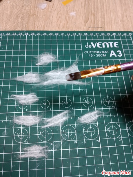 Как делала капюшон, забыла сфотографировать)) И как же, без прически !!! Беру, тонкий пласт выты, пропитываю его клейстером и потом стеком или зубочисткой собираю его хаотично, как бы в гармошку.