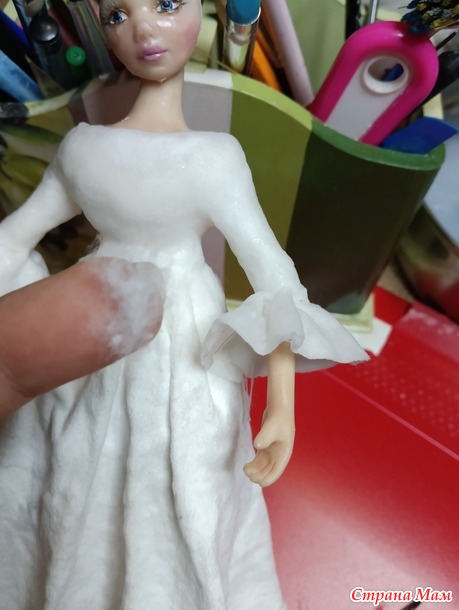 Теперь изготовление накидки, предварительно окрасила платье.