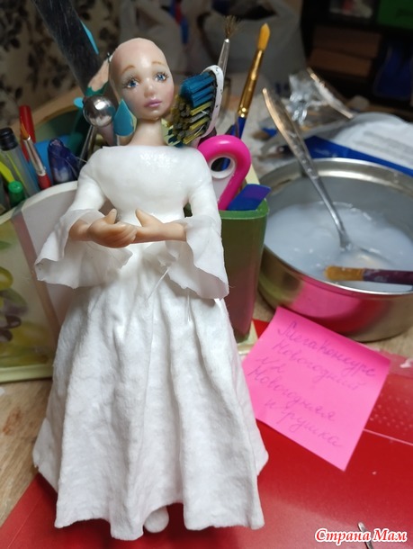 Что то подобное, я уже делала в другой группе и т.к. это полная моя фантазия и авторство, то учла все нюансы и свои ошибки. И решила усовершенствовать своего ангела и принялась за работу. В этот раз, решила, что ей необходимо сделать шею)) Кроме ручек и ножек вылепила и шейку))