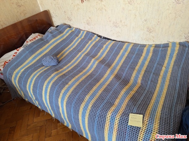 Размер пледа 150 х 190 см, пряжа Пехорка Перспективная.