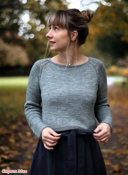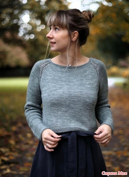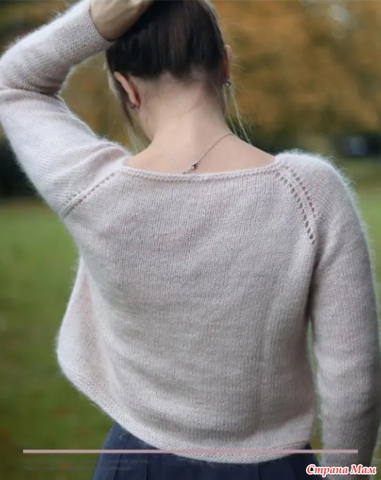 Джемпер вяжется с верху вниз: вырез горловины вяжется платочной вязкой. После вяжем регланную линию, а укороченные ряды позволят поднять задний вырез шеи по сравнению с передним.