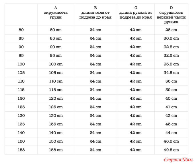 * Только размеры -, - (-, -, -, -, -) [-, -, -, -, 130, - 135] 140, 150, 158 см: прибавки только переда и спинки