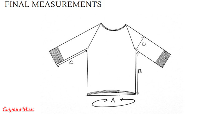 Примечание: прочитайте сначала всё описание и отметьте ваш размер, чтобы определить, какие части вы должны следовать, особенно для прибавок в реглане.