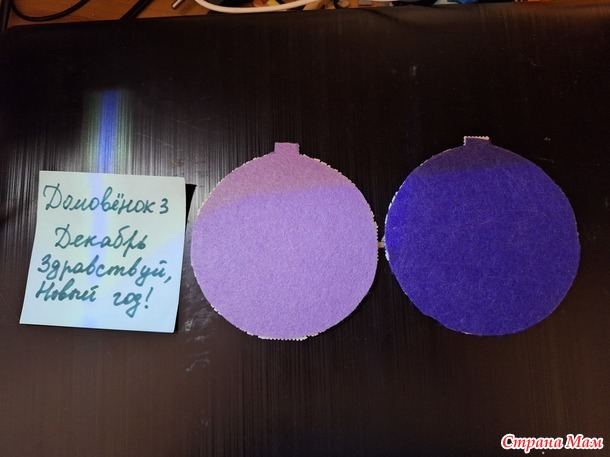 Я решила вышивать не один двухсторонний шарик, а два, поэтому ещё фетр на задник.