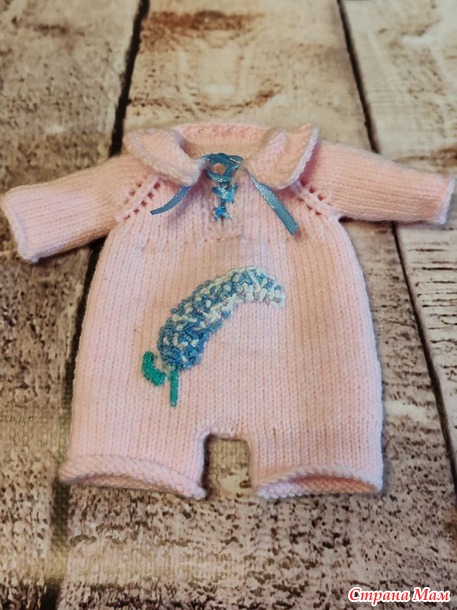 А это комбинезончик с вышивкой веточки сирени французским узелком