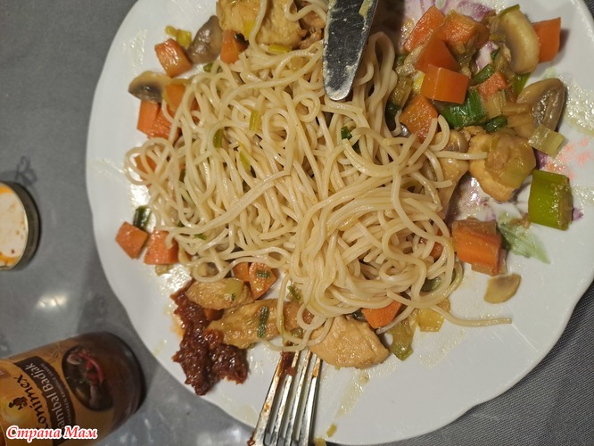 Вчера готовила овощи в соевым соусе с китайской вермишелью.