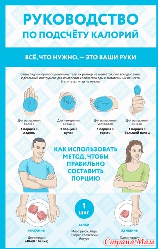 В общем, ее рекомендация по питанию - ладошка. Девчонки тут уже писали. На тарелке пол ладошки клетчатки (сырые овощи или отруби, например в суп вместо сухариков), остальное пополам белок и углеводы. Понятно, что прям точно так не соблюсти, в любом случае предпочтение отдается белку и овощам. Я настолько приучила себя к овощам, что без них сейчас не наемся. В любой прием пищи добавляю обязательно. Порции уменьшились сами собой, потому что я начала наедаться.