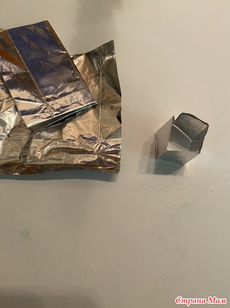 первый блин, т.е. фонарь вышел неплохим, но великоватым ю, поэтому решила сделать второй дубль и заодно показать, вдруг кому-то пригодится. Итак, для создания этого сооружения нужно не так много: достаточно жесткая фольга ( я взяла от шоколадки) немного пластики или самозатаердевающей глины, соломинка, черная и золотая акриловая краска, клей титан и ПВА и кусочек метализированного тонкого шнура. У меня золотого не было, взяла серебряный и покрасила золотой краской. Вроде бы все! Из фольги делаю вот такую заготовочку- это боковые стенки фонаря. Склеиваю клеем титан и получаю параллелепипед без верха и низа. Из соломинки( самой настоящей, природной) нарезаем грани в размер боковин фонаря.
