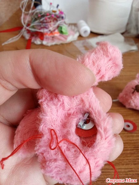 Пришила к голове ушки, вставила глазик, вышила носик-ротик.