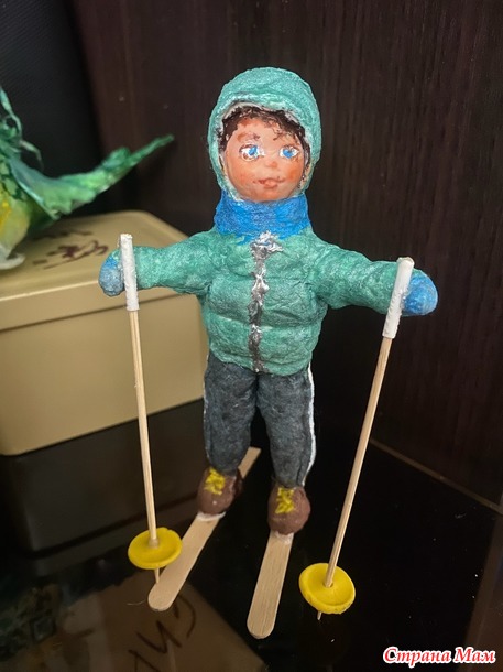 Фото мальчика на лыжах только одно. Тут он еще не совсем готов. Лыжи я потом чуток заострила и загнула, чтобы было больше похоже на настоящие. Конькобежцев, к сожалению, ни одного фото не нашла.