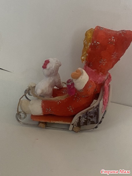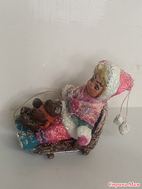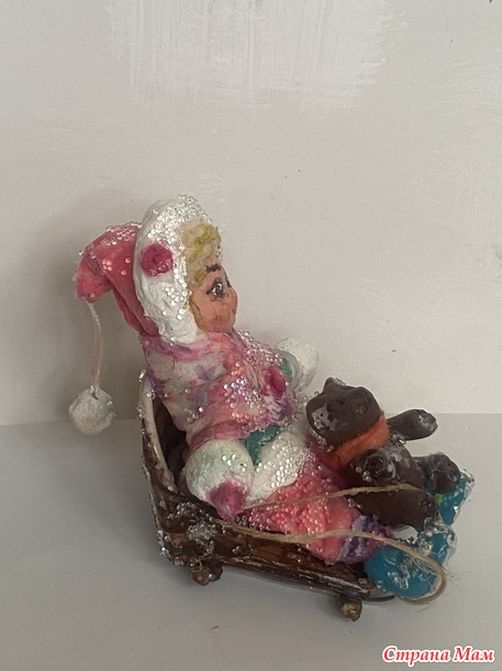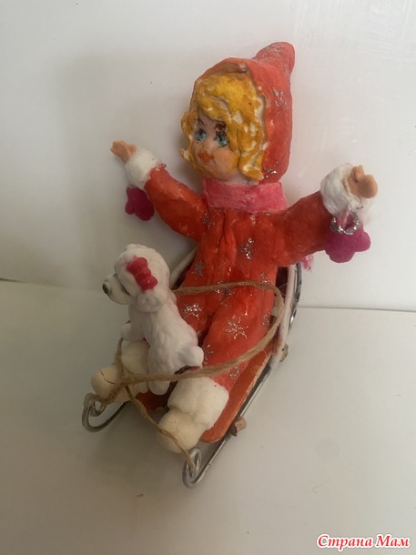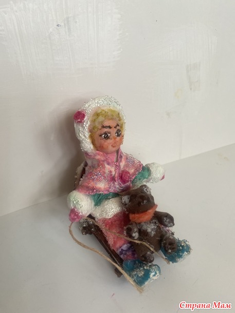 Вот такая малышка с медведиком. Медведь из пластики, санки из всего, что попалось под руку. Остальное из ваты.