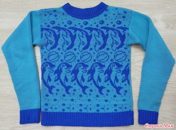 Резинки, спинка и рукава в 2 нити. Жаккард по одной нити каждого цвета