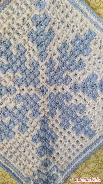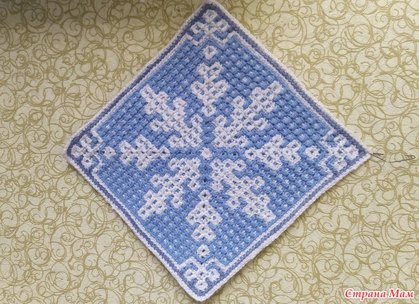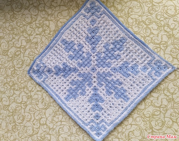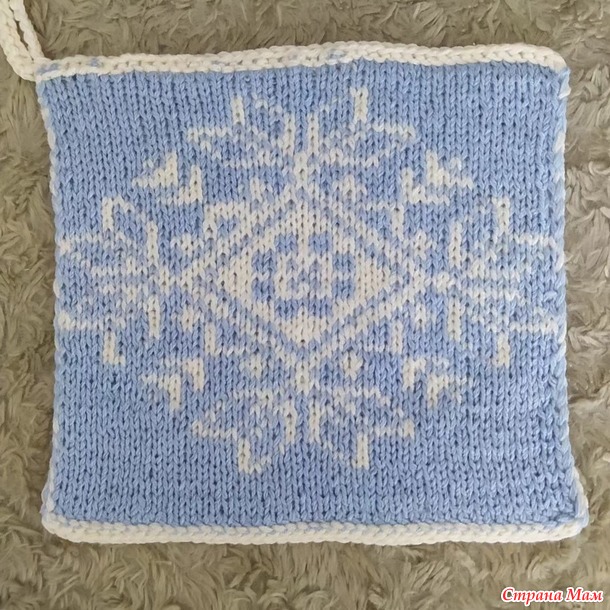 А это не по схеме Юли. Понравилась такая снежинка, вяжется спицами двухсторонним жаккардом.