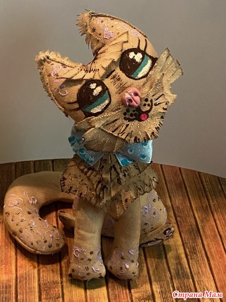 Это тоже грунтованные кошки. Она - вся такая гламурная, романтичная, крашена раствором свекольного и морковного сока. И на фото это не очень видно, но по всей кошечке есть роспись акриловым контуром с золотыми блестками. В общем, настоящая барышня! Он же простой дворовый котик, увидевший такую красоту и обомлевший. Тонирован раствором кофе. От этих игрушек остались только пять фото, но процесс изготовления аналогичный влюбленной парочке, которую я ранее выставляла. А эти котики живут теперь о-очень далеко!