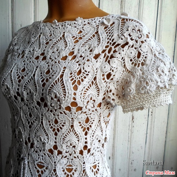 Я вязала платье до колена, но увлеклась и получилось длинное платье.