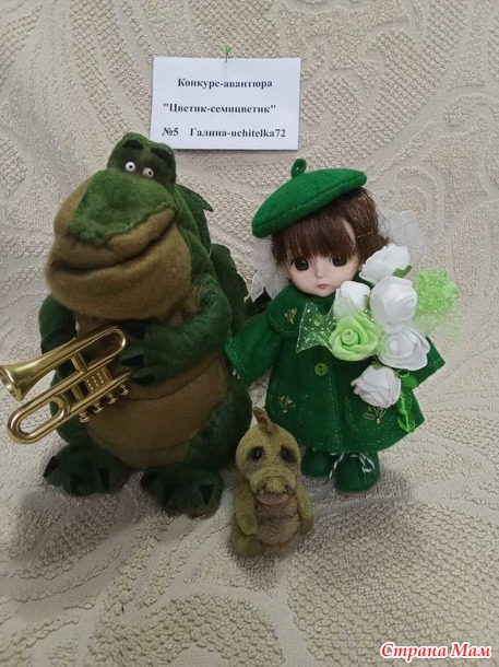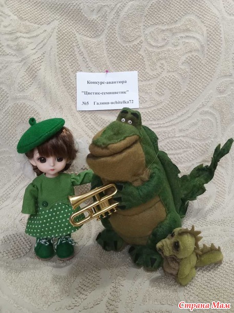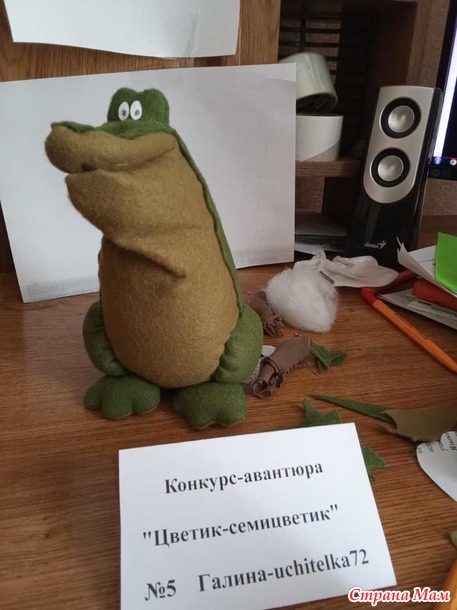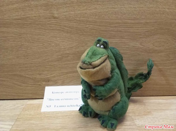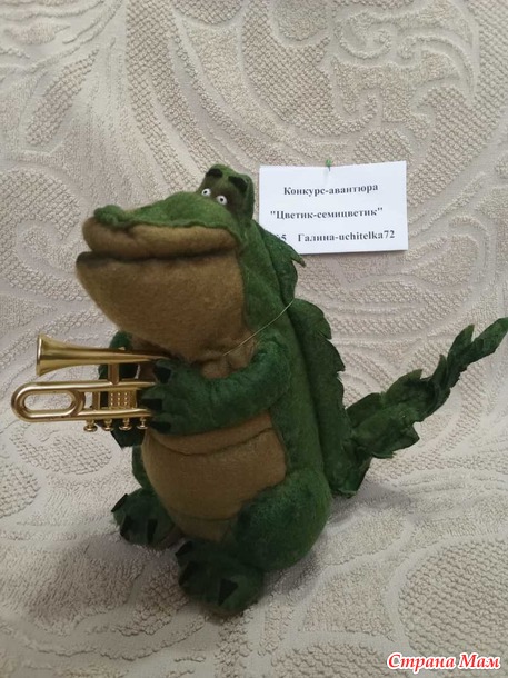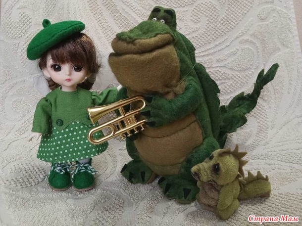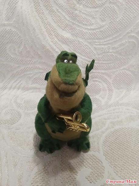 Персонаж по мотивам мультфильма «Принц и Лягушка». Не похож, не получился. Очень старалась, но увы! Но всё равно – зелёный аллигатор!