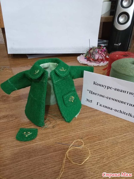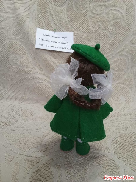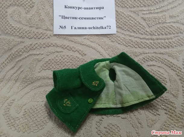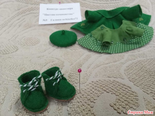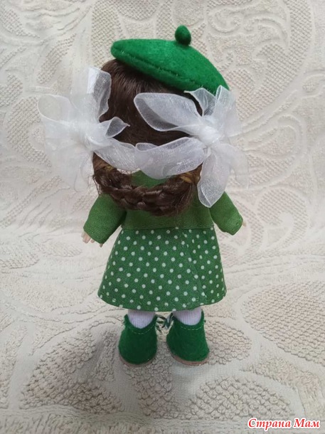 Крошечный зелёный наряд (баболька 16 см ростиком). Сшито всё вручную из фетра и коллекционного хлопка.
