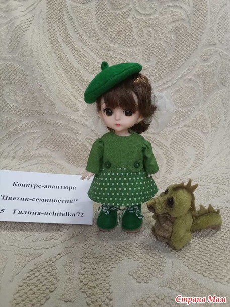 Баболька Алиска собралась на концерт Аллигатора Луи. Нарядилась во всё зелёное. Зелёное пальто и зелёный берет … Всё-таки в марте прохладненько ещё, ребятёнка надо одевать потеплее.