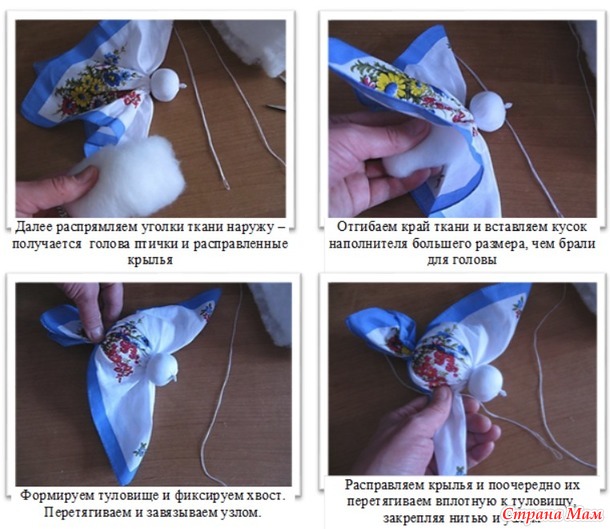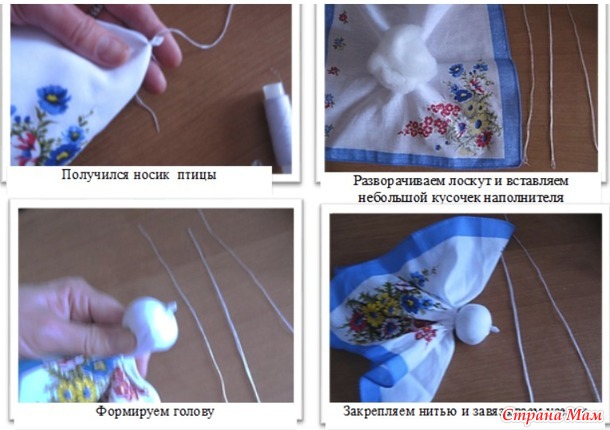 Не умеете шить, нет остатков пряжи? В доме не завалялось никакого мусора? Вот идея, как сделать птичку из носового платочка!