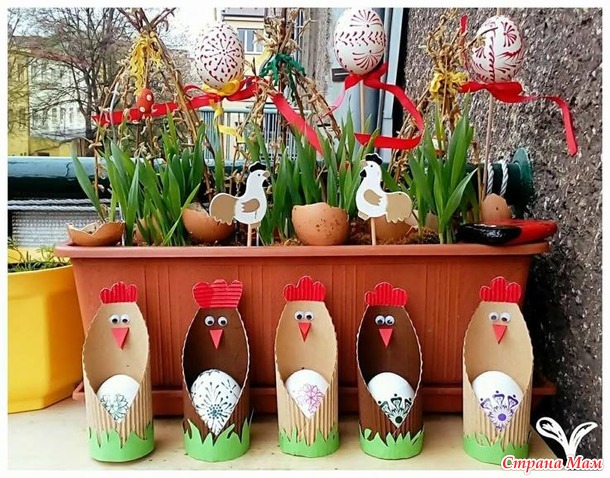 Скоро светлый праздник Пасхи, символ этого праздника яйца, курочки, цыплятки, короче всякие птицы. К этому празднику не только пекут куличи и красят яйца, многие украшают дом пасхальной атрибутикой. Делают различные весенние композиции. У меня возникла идея сделать композицию из "бросовых" материалов. Натолкнула на эту мысль картинка с миниатюрными скворечниками: