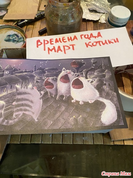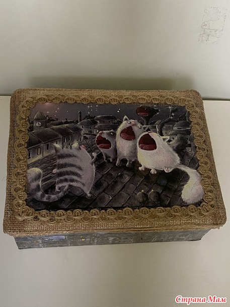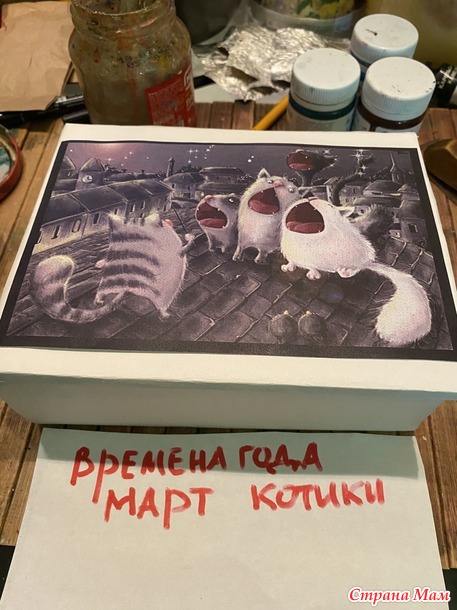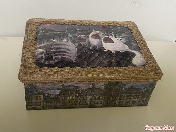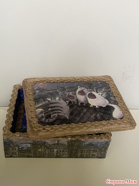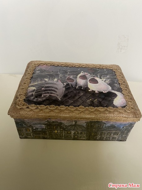 Моя шкатулка мартовские коты завершена! Это уже вторая на кошачью тему. Потому что первую начала делать до того, как решилась поступить в группу рукоделья