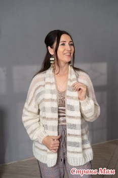 При помощи спиц (или крючка) мастера создают удивительной красоты вязаные изделия, соединив в одном изделии нити разной толщины. Узор может быть самым простым - лицевая гладь. Всё изделие вяжется спицами одного номера.