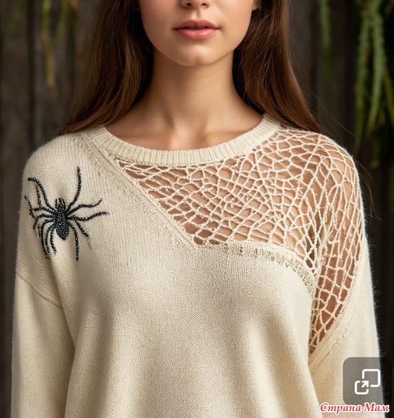 Обязательно. Попробую найти либо узор спицами. Либо крючком свяжу. Отдельно свяжу спицами свитер оверсайз. Паука тоже думаю вышить. Потому что есть вероятность перегруза всего интересного. Если что вышивку отпороть можно будет.
