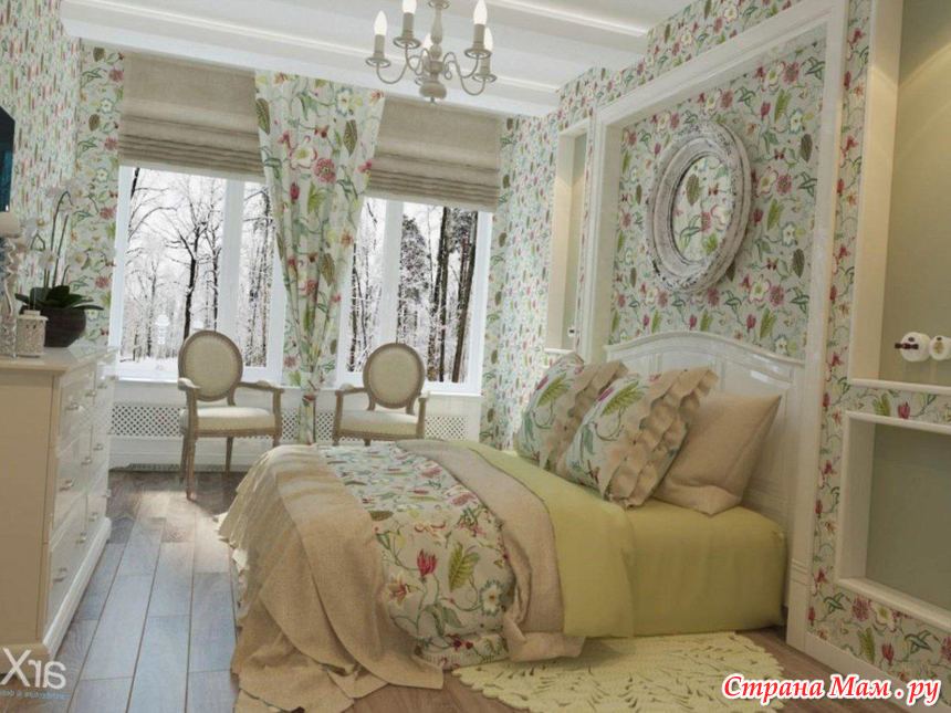 Четвёртая так вообще прям практически копия моей спальни в Москве, только кровать у меня не железная и розы персиковых оттенков, на шторах другой рисунок но цветы тоже в персиковых тонах и с обоями отлично подружились.