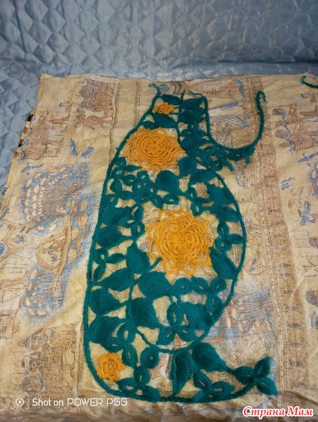 Начертила выкройку и положила ее на планшет. Подготовленный элемента наколола на выкройку. Элементы располагала лицевой стороной вниз изнаночная сторона вверху. Потом все иголкой сшила и отпарила готовое изделие. Оформила плечи и пришила застежку.