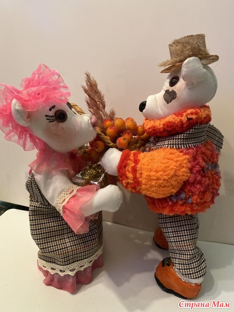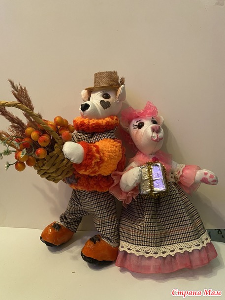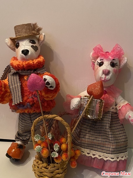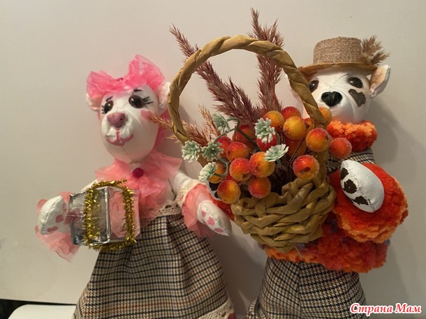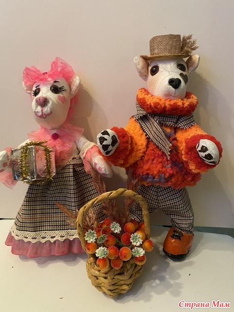 Пока остальное еще не готово, покажу хотя бы своих медведей. Это первые мои медведи, по моей же выкройке. Изначально думала сделать традиционных бурых, но шила из бязи и когда сшила и набила первую голову, о поняла, что это полярные белые мишки! Так вот и стали они белыми. Прикид им модненький соорудила и вот такая парочка сложилась. Одежда шитая из тонкой шерсти, кружев и капроновых ленточек. Шляпка из джутового полотна. Свитер у медведика связан на спицах.