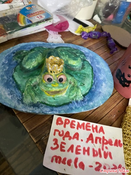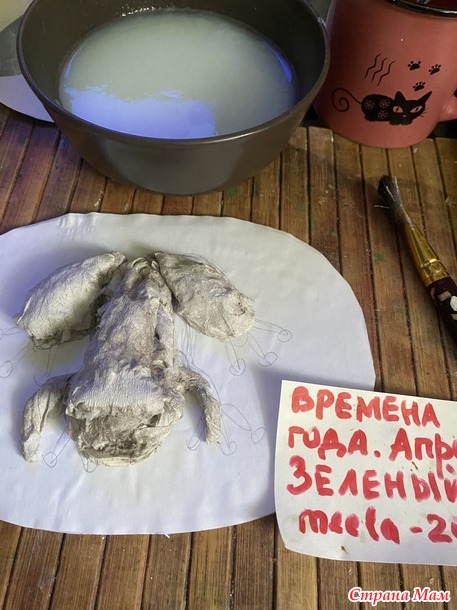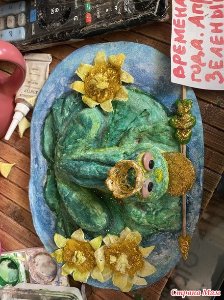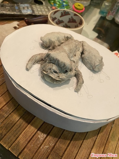 Я захотела вот такую лягушку. Вылепила ее из бумажной массы.
