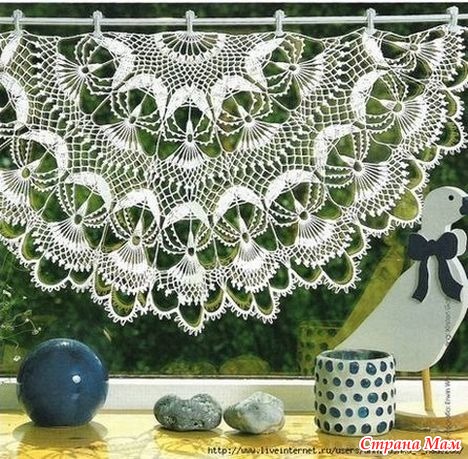 Но я бы, скорее, использовала как штору половинку старой кружевной скатерти. Не так давно видела в секонде похожую скатерть с ржавыми пятнами, а тут есть возможность спасти хотя бы половину.