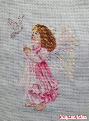 Девочки, всем добрый день! Вот не думала я, что такая небольшая работа будет такой сложной... Девочка-эльф на принтованной канве, много близких оттенков, и с канвой местами сливается. А уж металлизированная нить... думала, с ума сойду Было