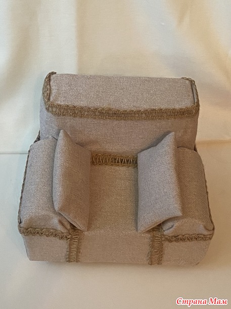 Это первая примерка, Ворона отнеслась благодушно, поэтому я еще сшила две подушечки и поставила диван на ножки - пробки от пластиковых бутылок. Все!