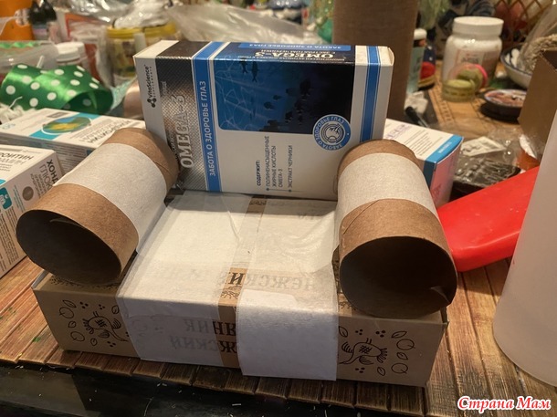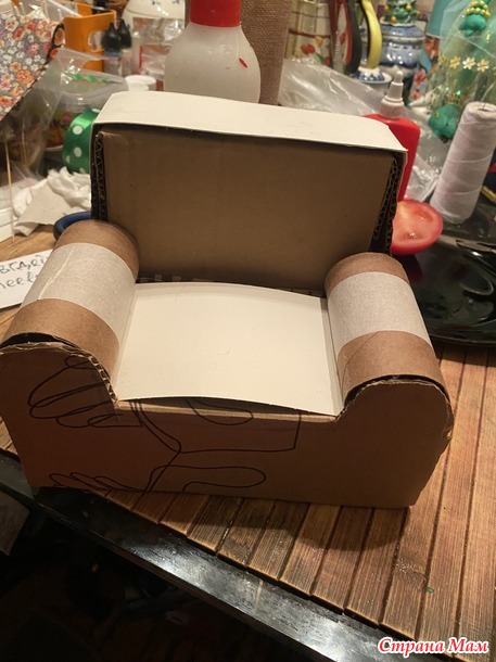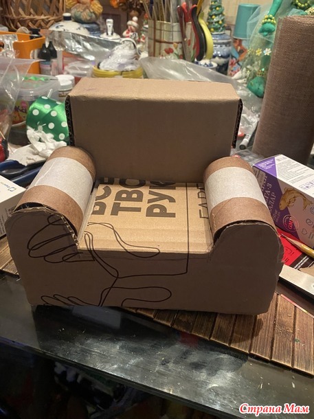 Эти вороны ужасные хитрюги! Но в этом топике речь не о вороне, а о диванчике. Когда-то по случаю, зайдя в магазин я увидела распродажу мебельных тканей( кусков) хомяк радостно заскакал и я отоварилась несколькими кусками. Вот один из них дождался своего звездного часа!А начиналось все с нескольких разнокалиберных коробочек и горфрокартона. И еще двух втулок от туалетной бумаги. Ну, и еще малярного скотча, который закончился в самый неподходящий момент!