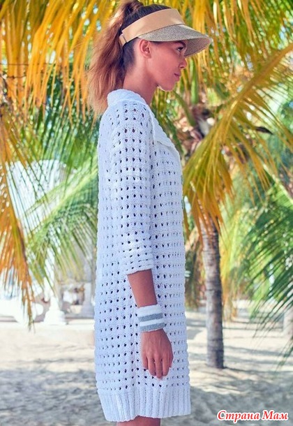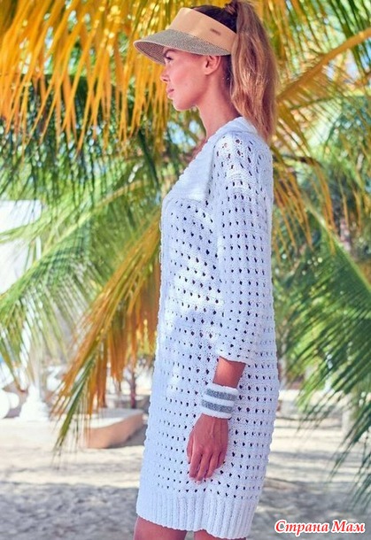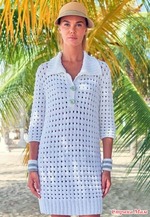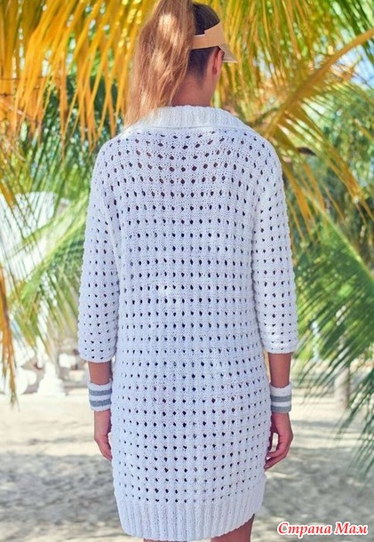 Белое сетчатое платье-рубашка Valenta от Elisabeth Plauert. Спицы.